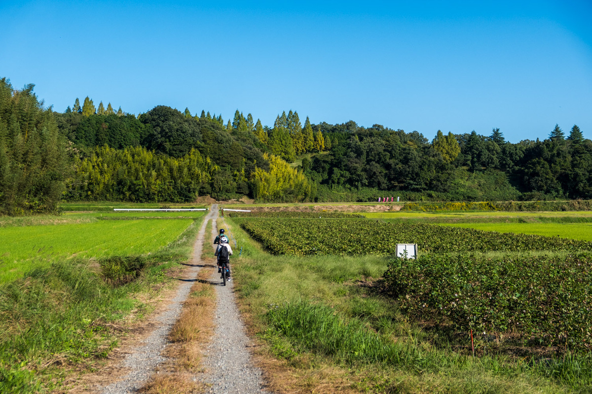 Here you can leisurely cycle past fields of the region’s premium sweet, black soybeans and traditional farmhouses. The wind carries the earthy scent of freshly tilled soil, alongside the whir of your tires on compacted gravel. In the shade of the surrounding hills, cool air drifts down through the trees to sunlit clearings below.