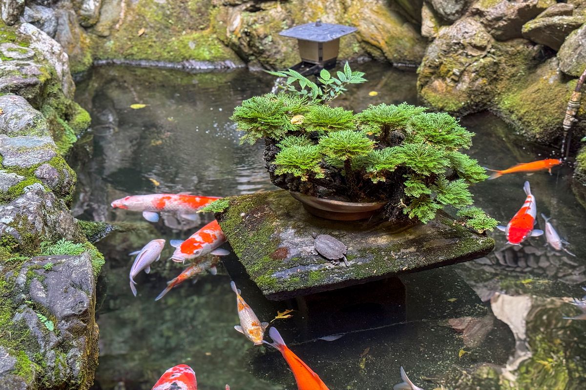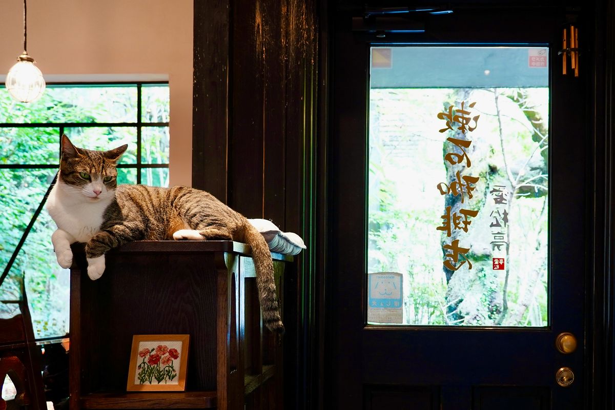 Two resident cats,” Botchan” and “Madonna”, spend their days lounging leisurely around the café and terrace, adding a charming, whimsical atmosphere reminiscent of Natsume Sōseki’s classic novel I Am a Cat. Natsume Soseki once described the view from his lodging here as “a paradise with an exceptional view,” and visitors today can enjoy tea in the same spirit, imagining the literary past unfolding around them.