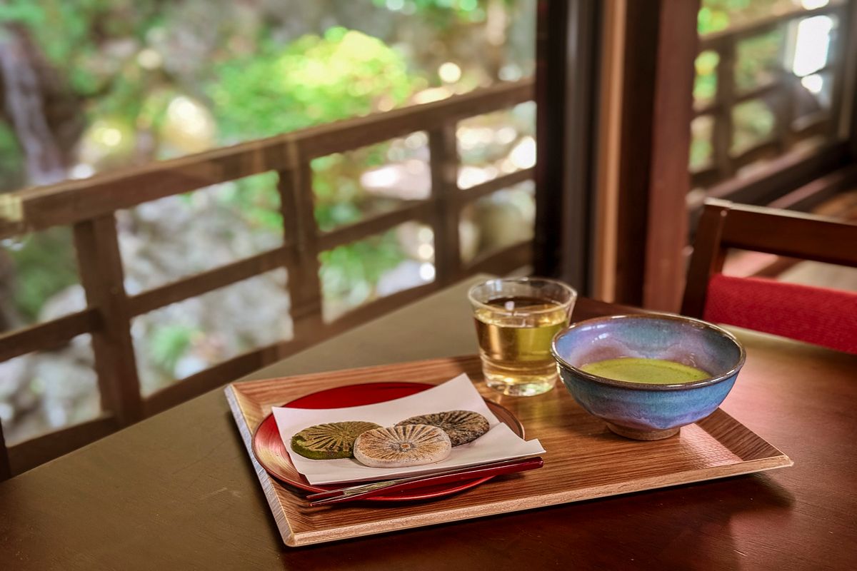 Its signature offering, Taki no Yakimochi—literally “waterfall grilled rice cake”—is still prepared much as it was centuries ago. A traditional tea room overlooks a small garden. Served warm on lacquered wares, the thin rice cakes are lightly crisp at the edges, softly yielding at the center, and filled with mildly sweet azuki paste. Each piece is carefully baked by the artisans with heartfelt attention.