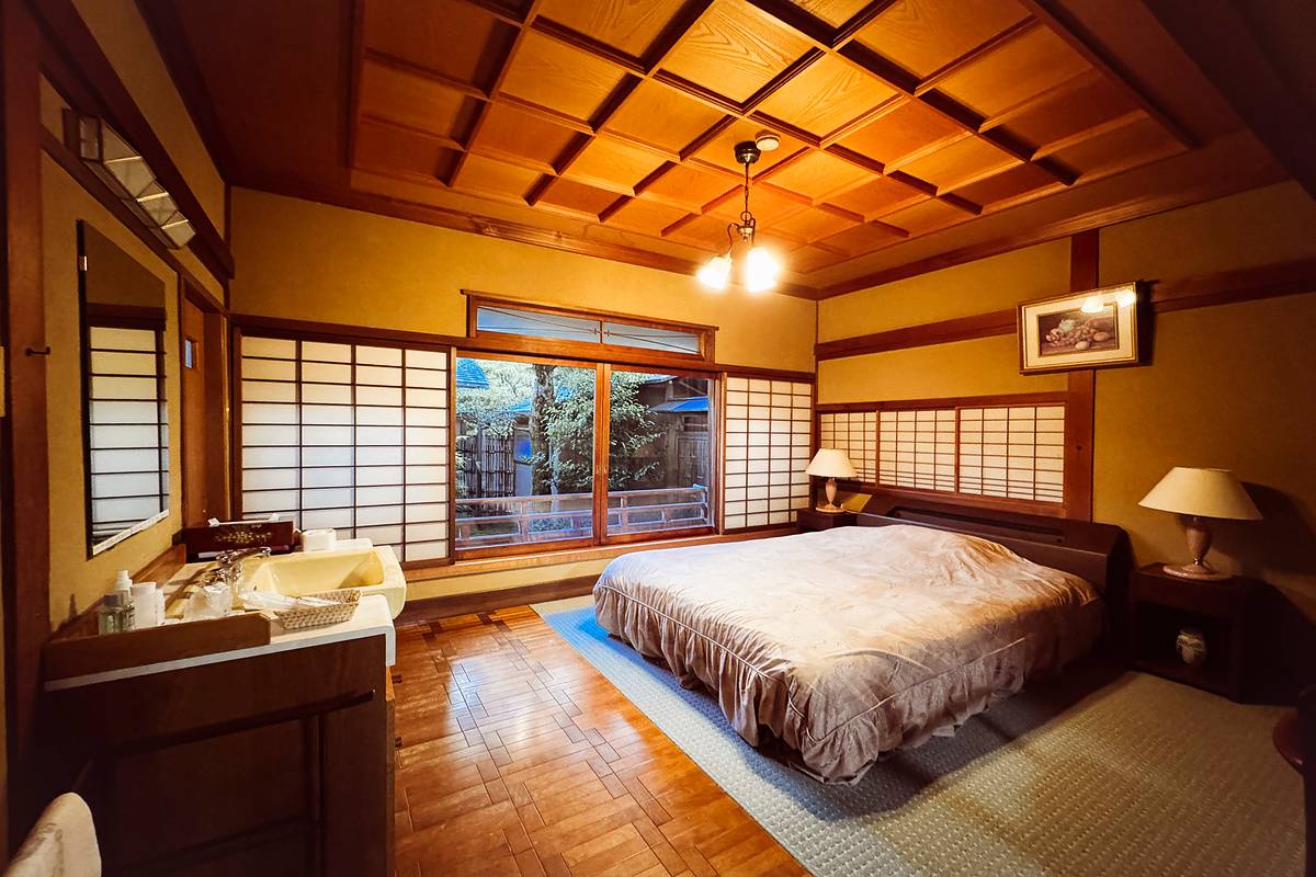 Boasting 14 guest rooms, Sansuien has retained its Taisho Roman aesthetics—a unique blend of traditional Japanese elements with Western influences popular in the early 20th century. Timber ceilings, coated ebony floors, stained glass, pendant lighting, and even a rotary telephone, all reinforce the property’s undeniably nostalgic atmosphere. That being said, for those with mobility needs, the main building does include a stair lift between floors.