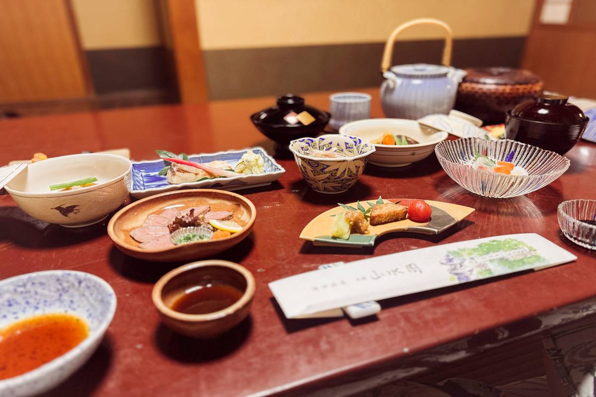 That being said, for guests, dining at Sansuien centers on seasonal, locally-sourced ingredients from Yamaguchi Prefecture served kaiseki-style. Because the menu makes use of what is in season, it can vary throughout the year. Previous menus have featured: sashimi, grilled buri with salt, simmered seasonal vegetables, kuruma prawn tempura, roast beef, rice and akamiso soup, and fruit for dessert.