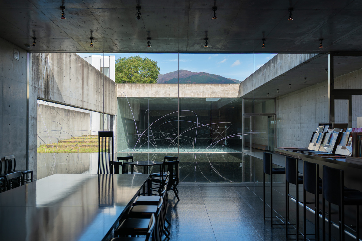 The first space that visitors are likely to encounter is Earth, which features Aiko Miwayaki’s Utsurohi – a Moment of Movement. It’s an interesting mixture of materials and surfaces, a tangle of stainless steel wire arcs sprouting out of black stones and reflected on a stage of still water. The installation looks quite different depending on the time of day and season, especially in the frosty winter. Its central axis points toward the summit of the magnificent Mount Nagi.