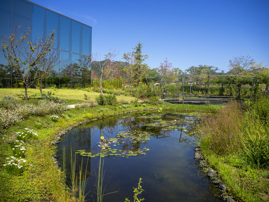 Within this museum’s collection, the most popular pieces are Émile Gallé’s glass vases, along with some 500 pieces of art and crafts collected over half a century by Yumiko Simose and her parents, including works by artists such as Henri Matisse, Marc Chagall, and Léonard Foujita. Outdoors, the planting palette references flowers favored by Émile Gallé. The grounds change tone and color throughout the year, just as Ban’s mirrored surfaces and colored cubes amplify the seasonal shifts.