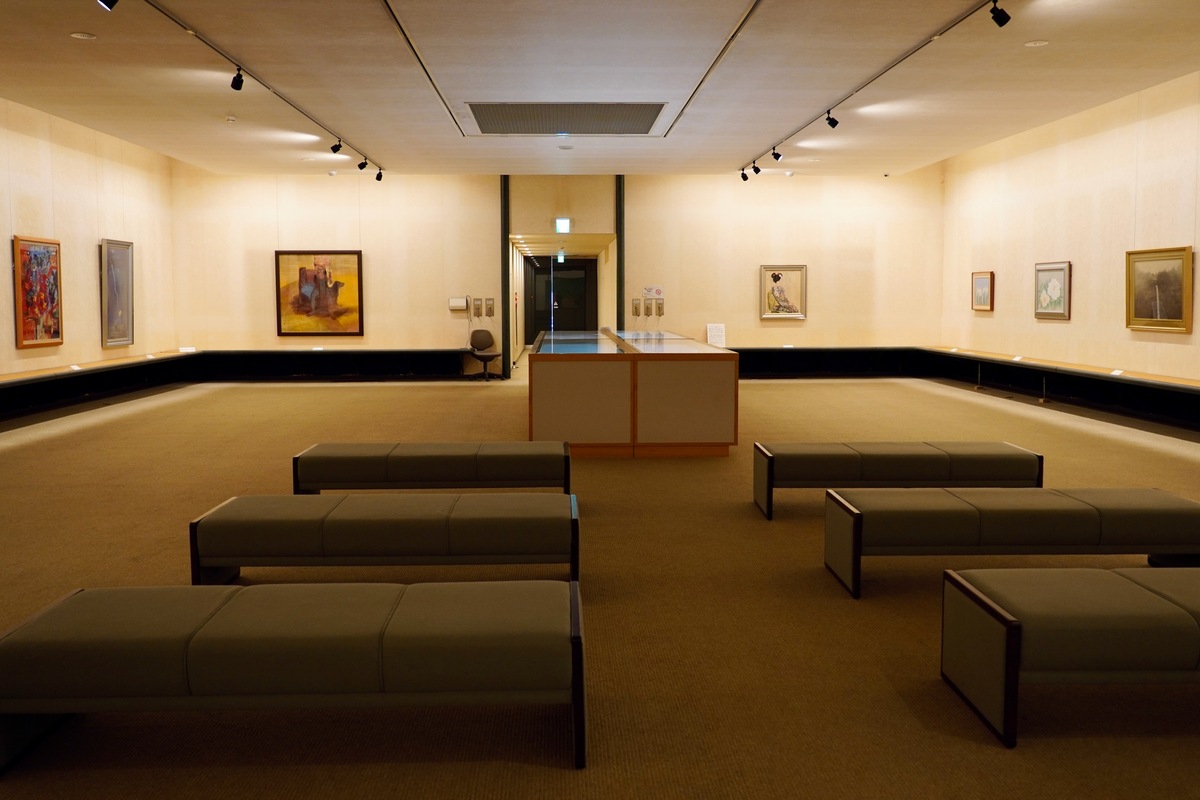 Another highlight is the commemorative exhibition room dedicated to the Japanese painter Toshio Tabuchi, inaugurated on the occasion of the museum’s 10th anniversary. It displays some of the artist’s original large-scale paintings of semi-abstract landscapes and scenes in perspective, alongside preliminary sketches and even tools and materials that he used to create them.