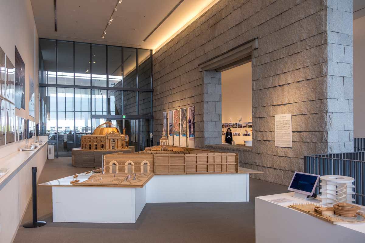 Inside, the gallery is conceived as a visual retrospective of Ando’s architectural career. Concept sketches, drawings, models, architectural plans, and photographs trace the trajectory of his diverse activities over several decades. On the upper floor, a library area allows visitors to freely browse Ando’s own publications as well as books on architecture.