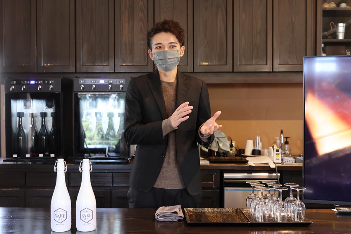 After the tour, Uchida provides an orientation session at the on-site bar. As a brewer, he is uniquely positioned to explain how sake is made, and he uses simple visual aids and diagrams to do so. Being a sake sommelier, he can further describe the different types of sake, detailing their particular flavors, aromas, and textures.