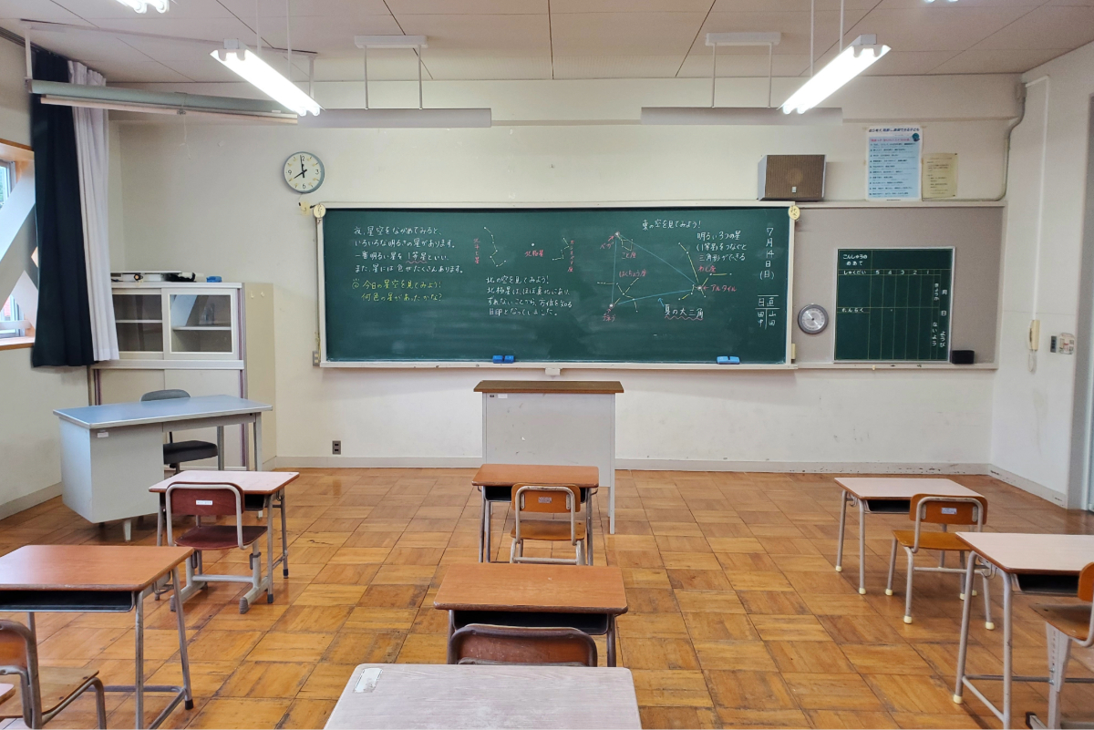 After the Awa Odori experience is over, visitors are free to explore the school grounds. Architect Masuda Tomoya (1914–1981) designed the gymnasium and kindergarten buildings in an architectural style that is unusual for schools in Japan. The kindergarten is particularly striking, featuring high ceilings and large windows that provide views of the surrounding forest. It now serves as a free space for relaxing and enjoying drinks. Much of the rest of the school has been preserved, with desks and chairs remaining in the classrooms, staff room, and principal’s office.