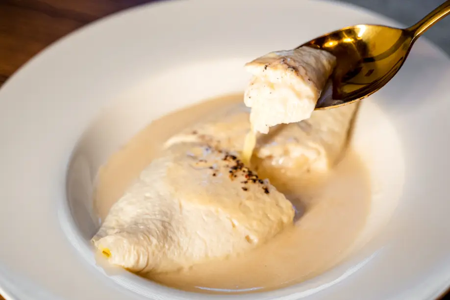 ぜひ食べたい一品は、「Bonappetitオムレツ 白い恋人達 ~今宵涙こらえて~」。恋人たちの切ない物語思わず想像してしまうようなネーミング。徳島の契約農家から取り寄せた卵黄まで白い特別な卵を使用した珍しいオムレツで、卵のコクを引き立てるチーズクリームソースに、黒胡椒で香り付け。ワインは赤や白などお好みのワインでご一緒に。