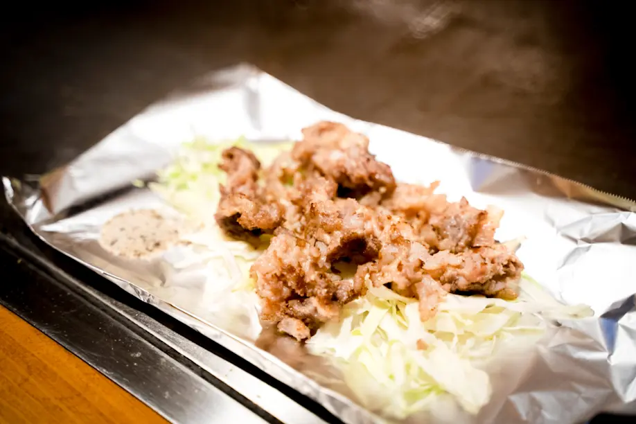 新鮮なコウネを使用した「コウネの鉄板焼き」もおすすめ。コウネとは牛肉の肩バラ肉のことで、脂身の軽い口当たりがお酒にピッタリ。実はコウネ焼きを食べられるお店は意外と少ない!気になった方はぜひこちらでどうぞ。