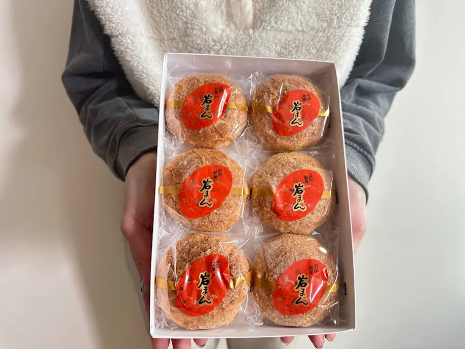 岩まんは、岩国市の老舗和菓子店「岩味屋」でのみ作られている、岩国銘菓です。大きさは直径8センチ、厚さが4センチほどで、通常のまんじゅうより一回り大きいサイズ。賞味期限は製造日から5日です。