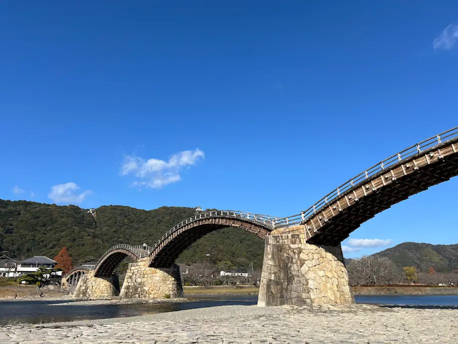 錦帯橋から岩味屋までは車で約10分。川沿いの石畳を歩いたあとに、旅の締めくくりに立ち寄りたくなる、そんなお店です。